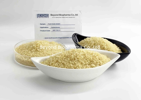 The gelatin produced by Beyond Biopharma is produced from high quality food grade bovine hides and skins. Food grade gelatin is derived from bovine hides and skins. It is rich in amino acids and various proteins. The jelly strength is from 80-260 bloom g, and the viscosity can reach 6-15 degrees. Gelatin has excellent and foaming rate, so it is widely used in various food industries such as candy, snacks, jelly, egg yolk soup and meat products.